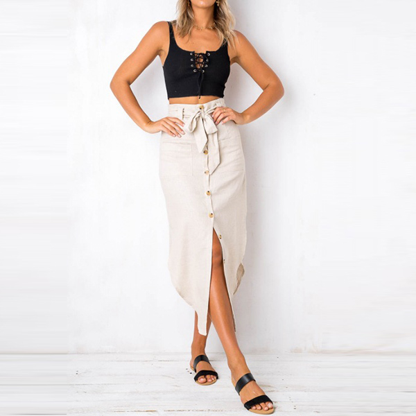Boost your style with the help of this skirt. It comes with a solid color,finished with high waist,irregular