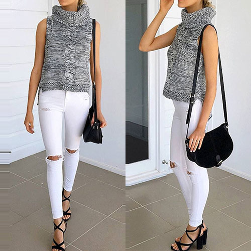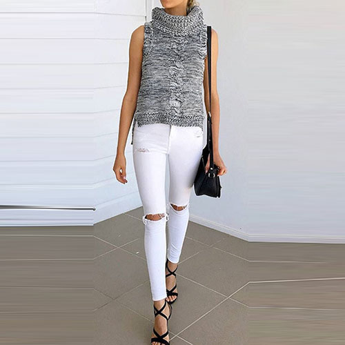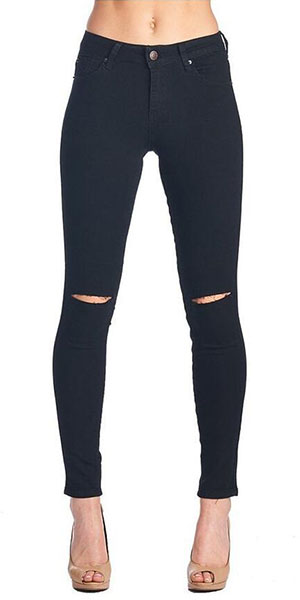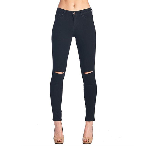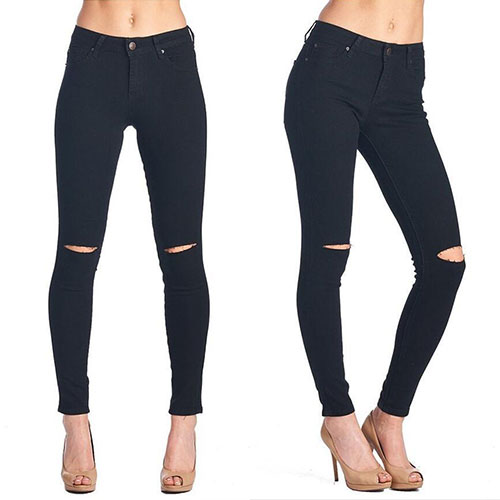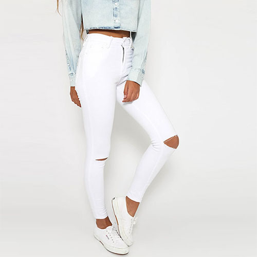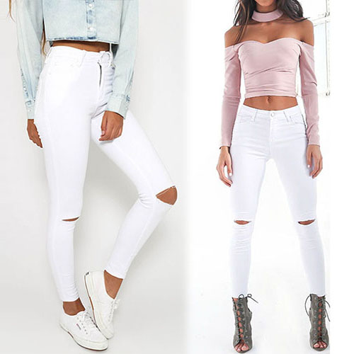 the ripped pants is a trendy. With high waist, ripped and slim-fitting design, this denim pants can better