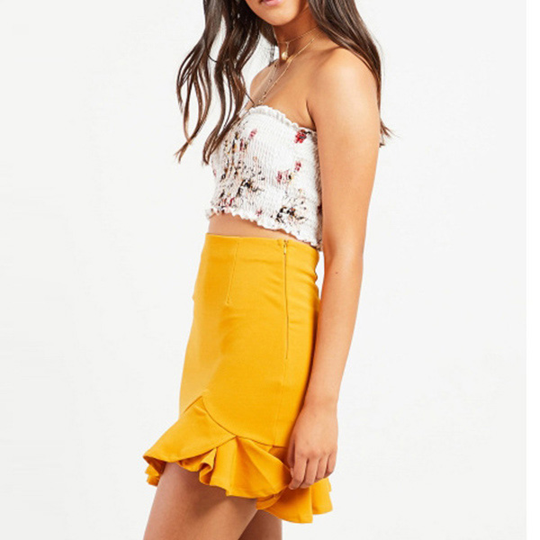 yellow tone,finished with high waist and ruffle hem,this skirt can offer you different fashion style by