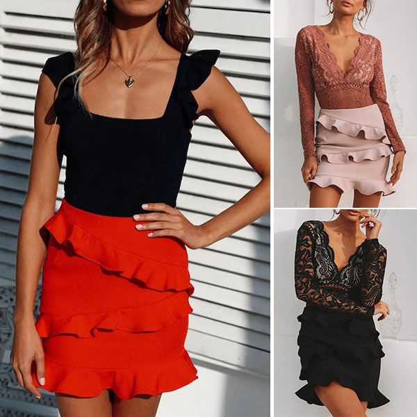 with a solid color,with high waist and ruffle design,this skirt not only can showcase your slender figure,