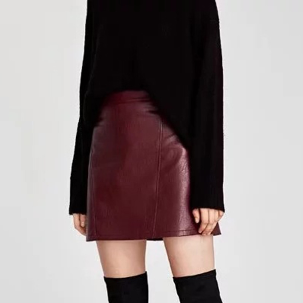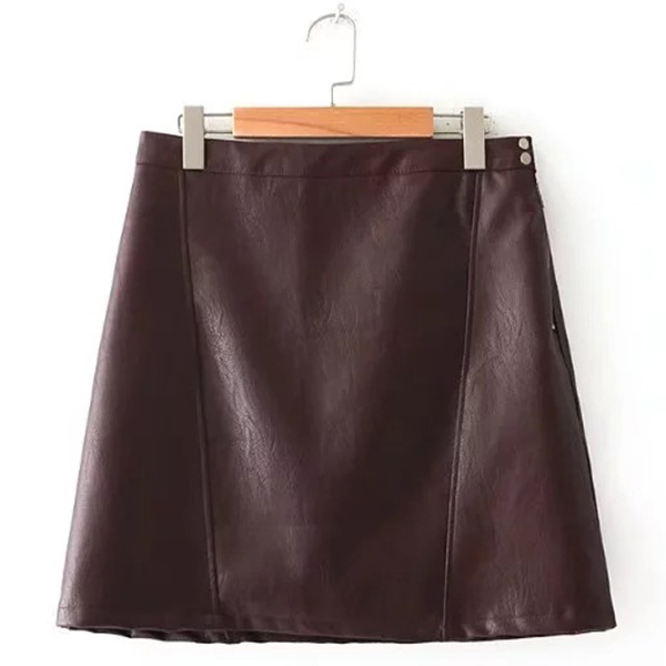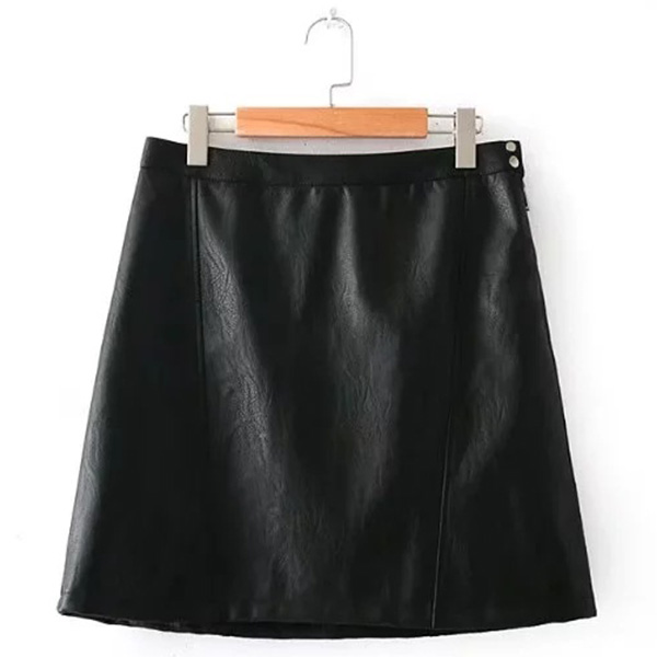 This PU leather skirt features a solid color,finished with high waist and an A-line silhouette,this wonderful piece