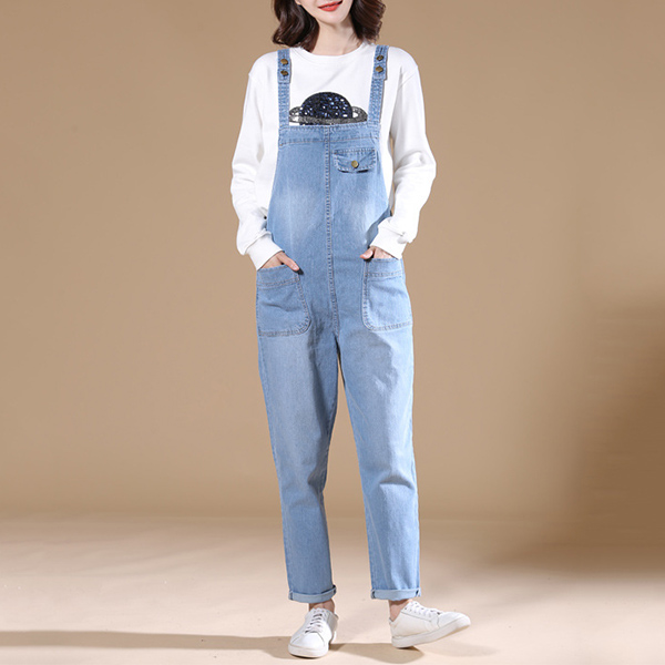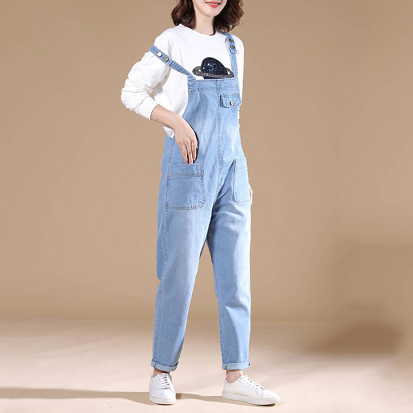 For a playful,youthful yet stylish daily look,you can have a try this denim overalls.The high waist and fit silhouette design can showcase your slender figure,while the soft,breathable fabric and adjustable shoulder strap design canoffer you a comfortable wearing feeling. You can just matching with a simplet-shirt to have a laid-back but fashionable look.
