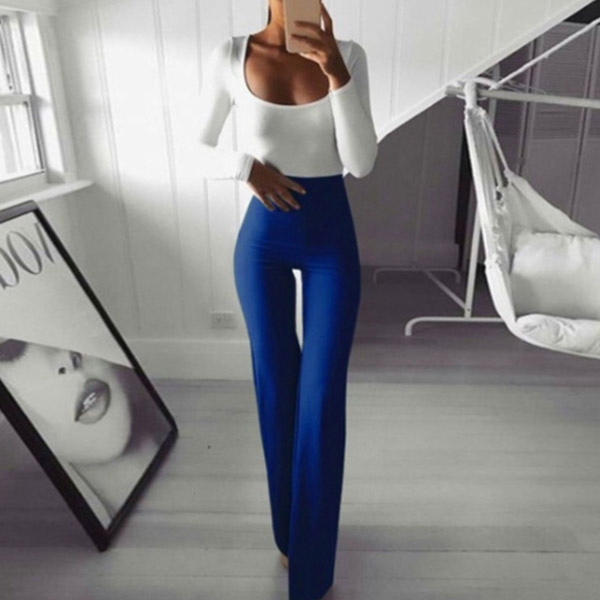 When you slip into this flared pants,your slender legs can have a full display. It is designed with a solid color,