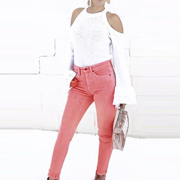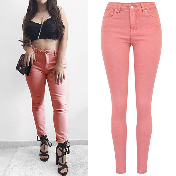 The most distinctive of this jeans is the pink tone design. Moreover,the high waist and fit silhouette design ca