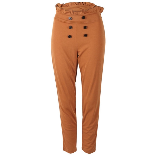 It comes with a solid color,with high waist and a fit silhouette,this pants can showcase your sldenr figure.
