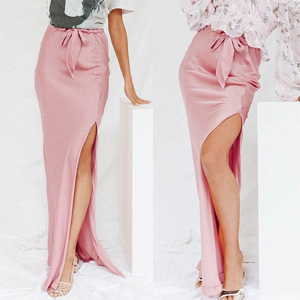 pink tone,the side slit hem design will enhance its charm,while the high waist design will demonstrate