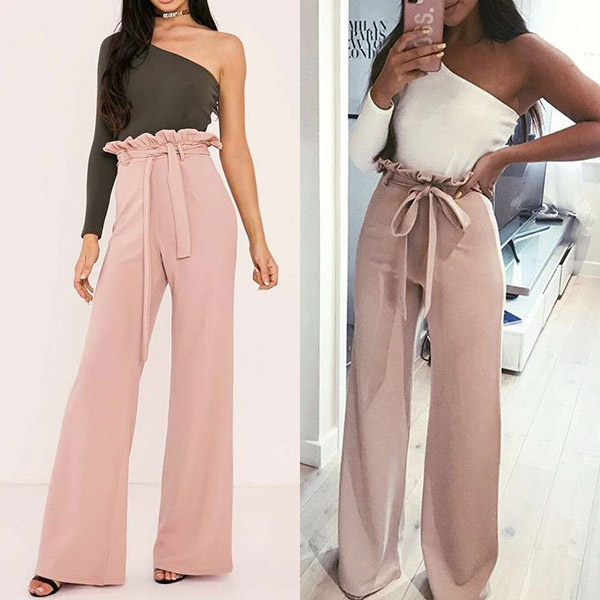 Wide-leg pants is every girl's wardrobe essential. So we suggest you this one. Solid color style,