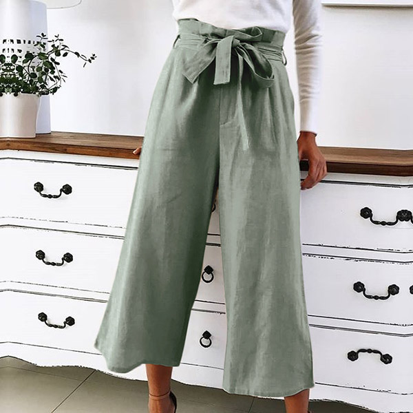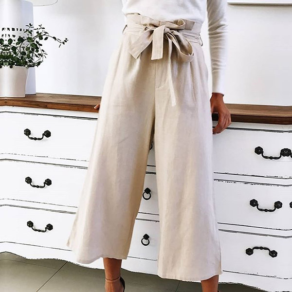 Wanna catch the latest fashion trend? Then invite this wide-leg pants to your wardrobe. Solid color style,