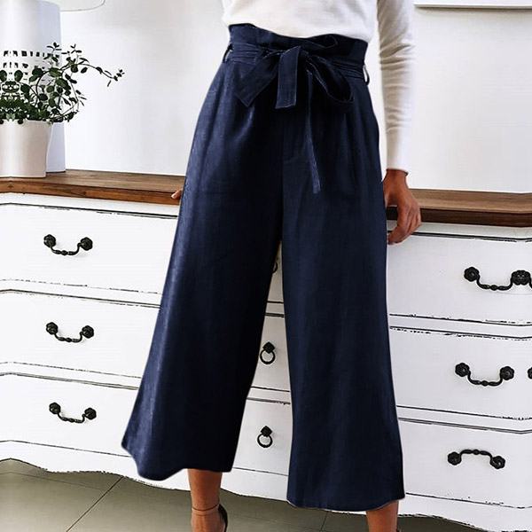 finished with high waist and a wide-leg silhouette,this stylish pants can showcase your slender figure.