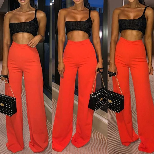 Comes with a solid color,the high waist and wide-leg silhouette design can showcase your slender figure.