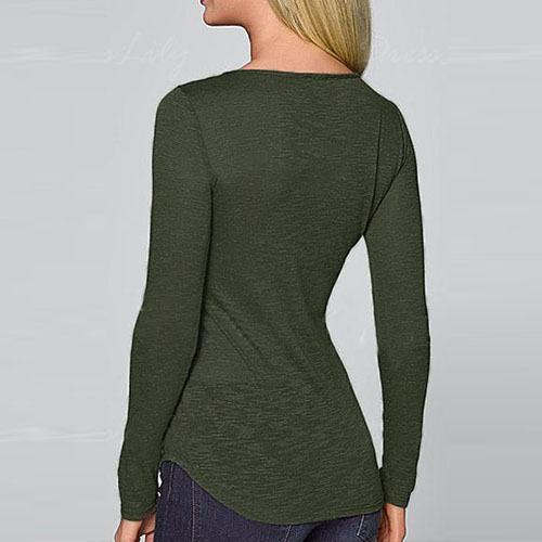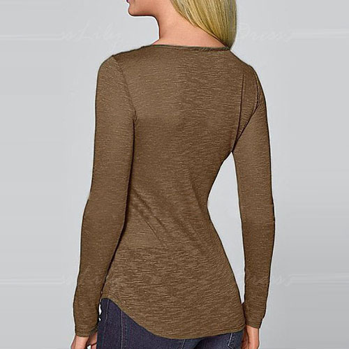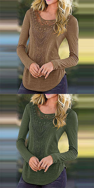 This t-shirt features solid color style,crafted from soft and cozy fabric,with long sleeve and round neck