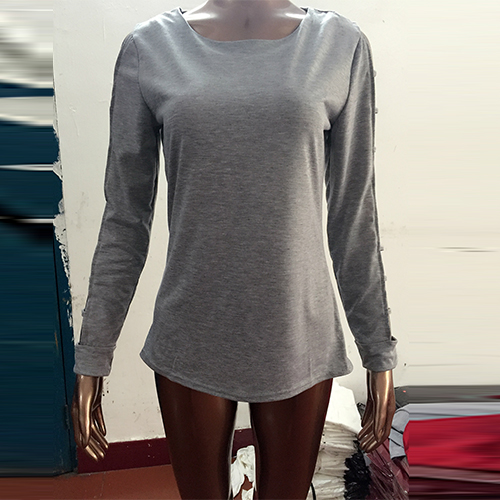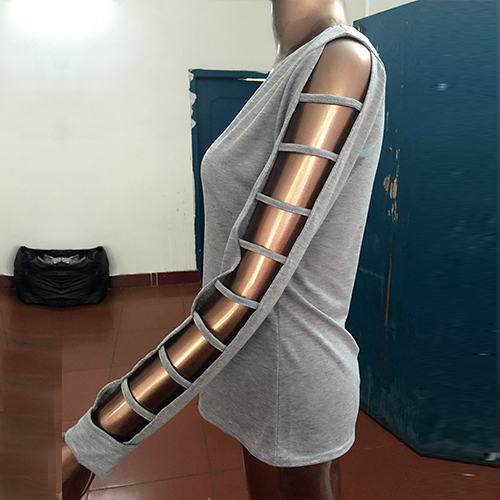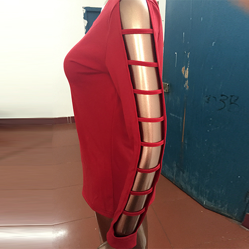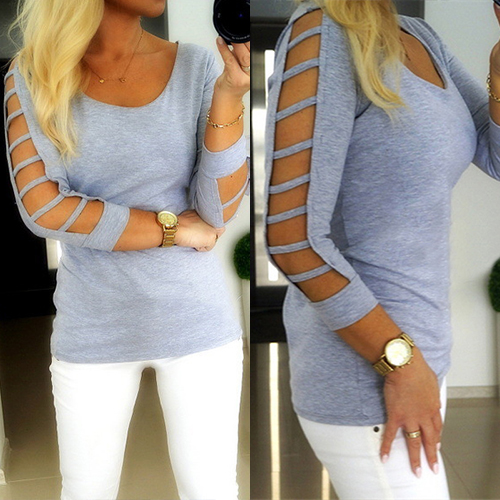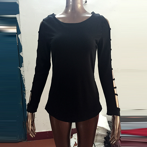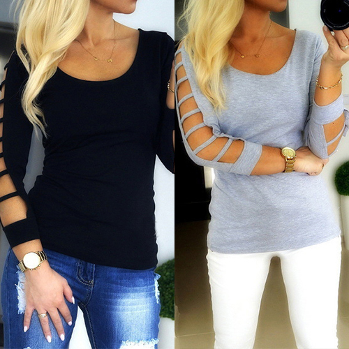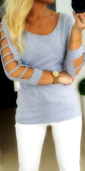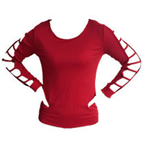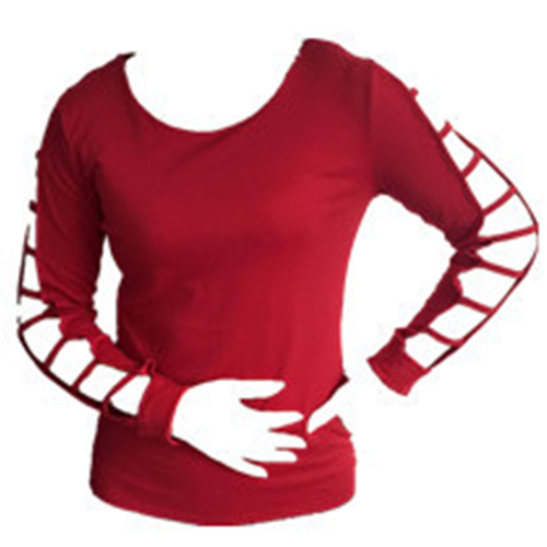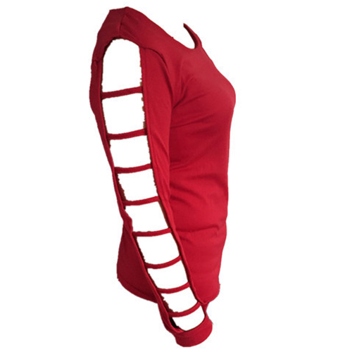 Solid color style,with hollow out long sleeve,round neck and cozy fabric,this t-shirt can keep you