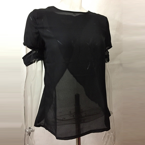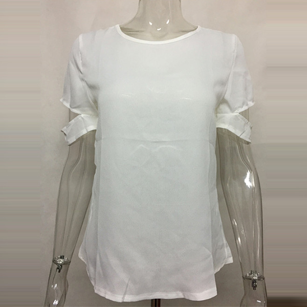 its simple and chic details like hollow out short sleeve,round neck,slit hem design at back make this piece appealing.