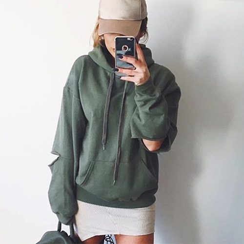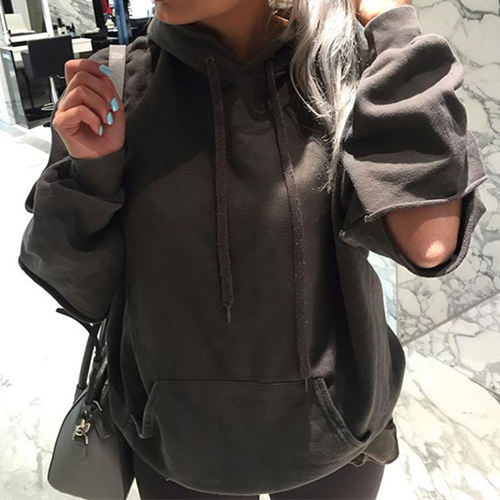 Fashion Solid Color Hooded Cut-out Long Sleeve Sweatshirt For Women
