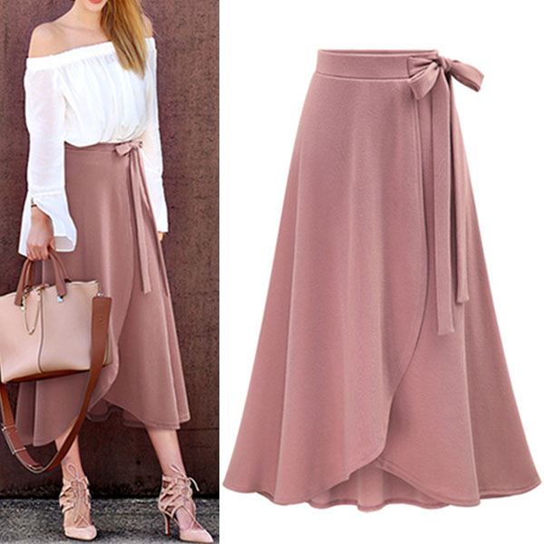 Update your wardrobe ensemble by adding this skirt. Solid color style,designed with high waist,an irregular hem with slit