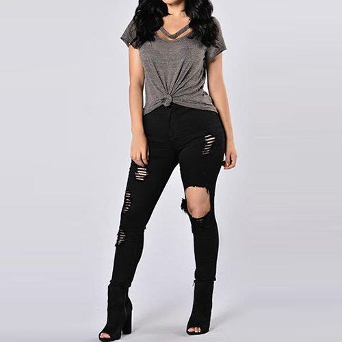 side knee, this pair of jeans can perfect show your slender figure and edgy style. Be bold to