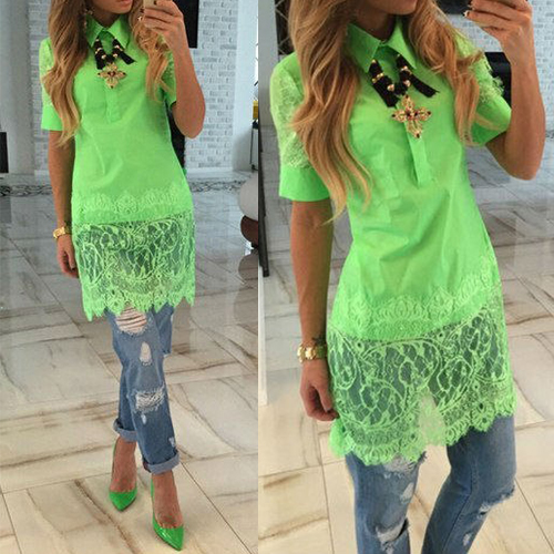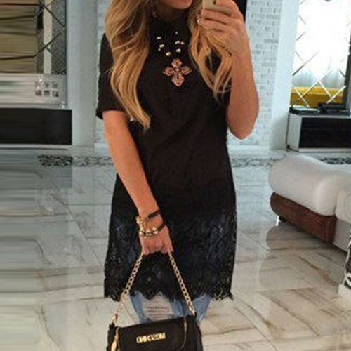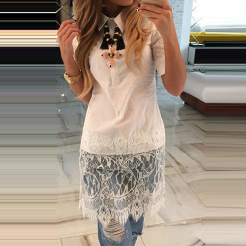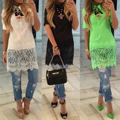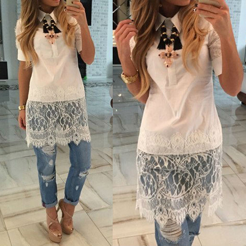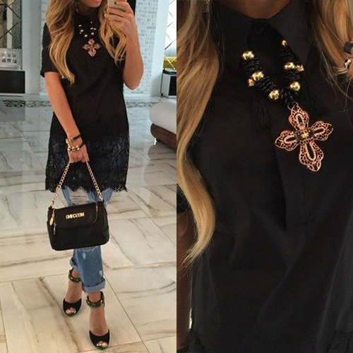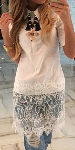 material and fashion design, you never regret for holding it. Lace spliced design with lapel and