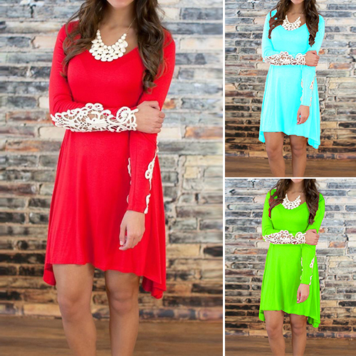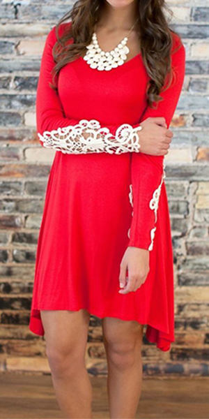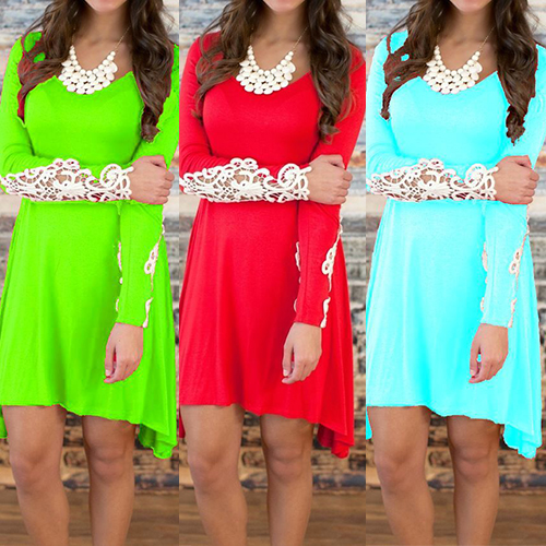 Solid color style,with long sleeve,round neck and irregular hem design. Plus,its lace spliced design makes