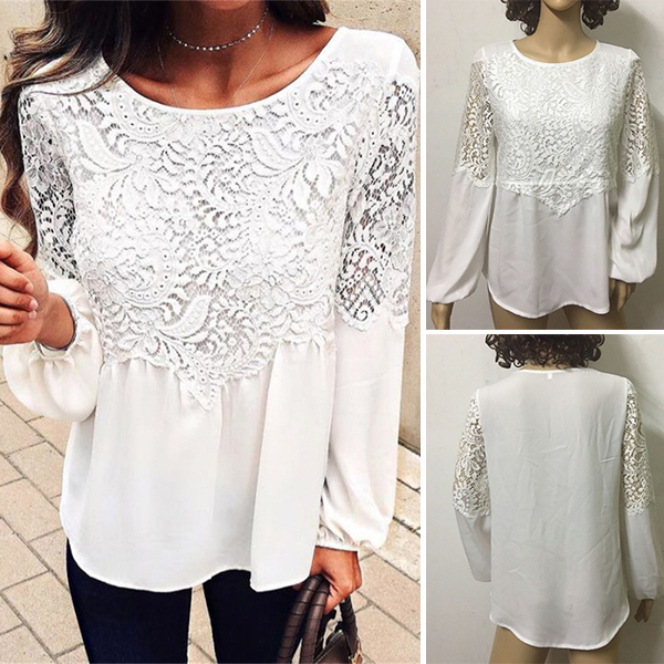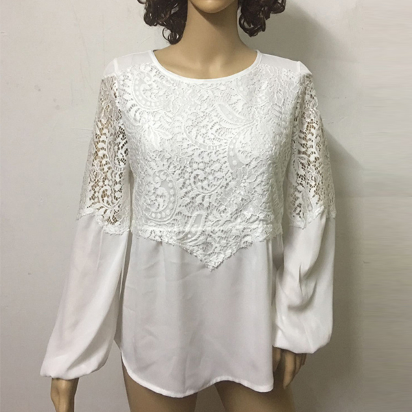round neck and a loose silhouette,this chiffon top can give you a cool and comfortable day. Moreover,the lace spliced design