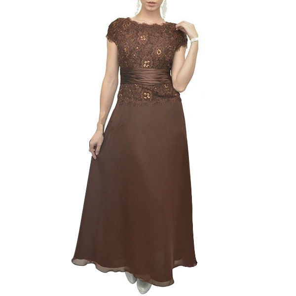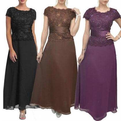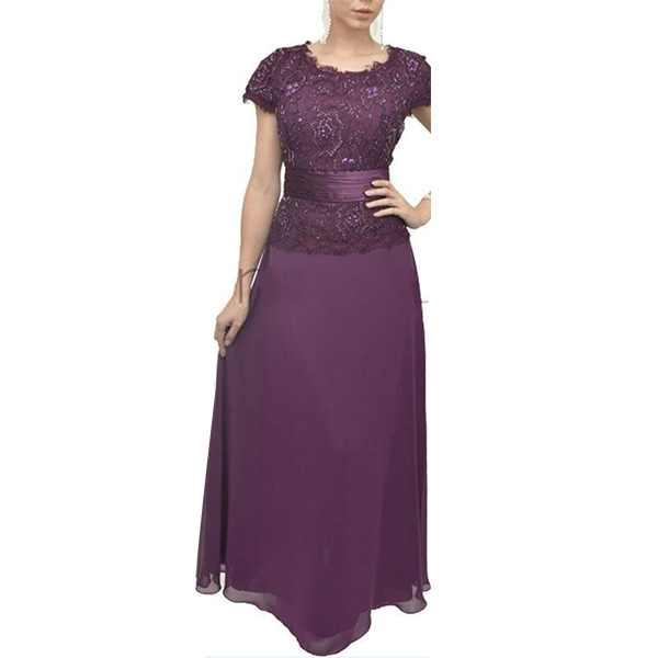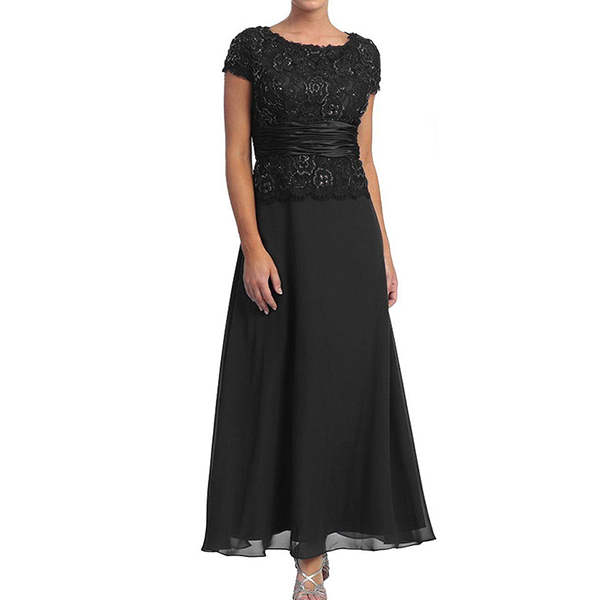 Fashion Solid Color Lace Spliced Short Sleeve Round Neck Maxi Dress