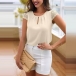 This top comes with a solid color,simple yet generous,while the lace spliced short sleeve design will enrich