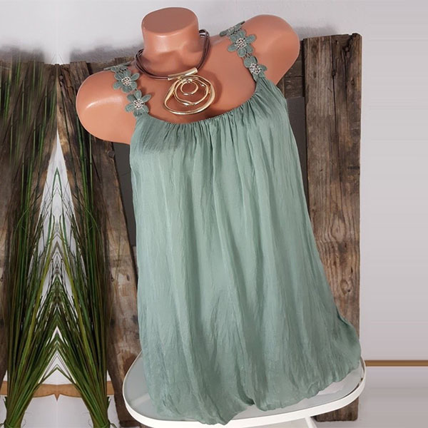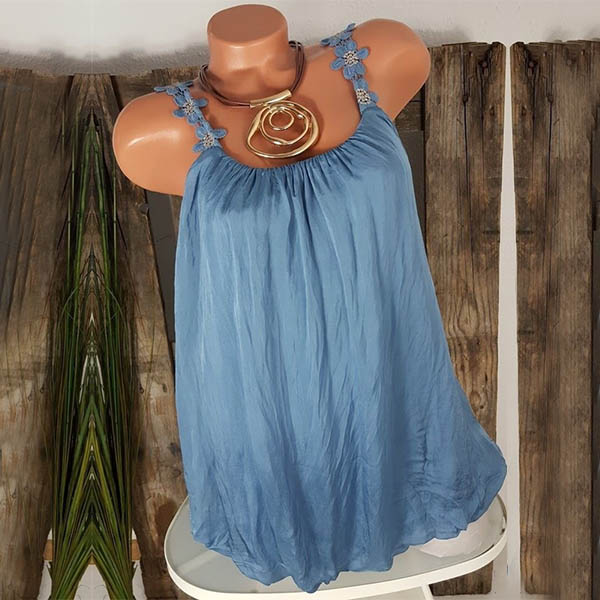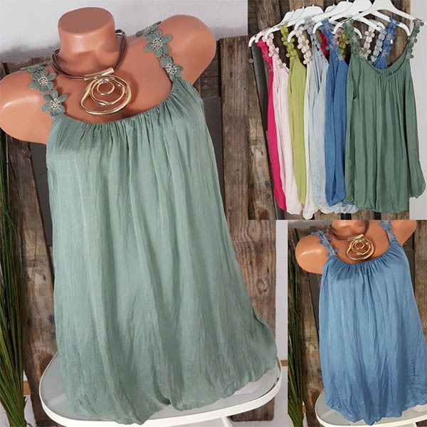 Fashion Solid Color Lace Spliced Sleeveless Loose Top