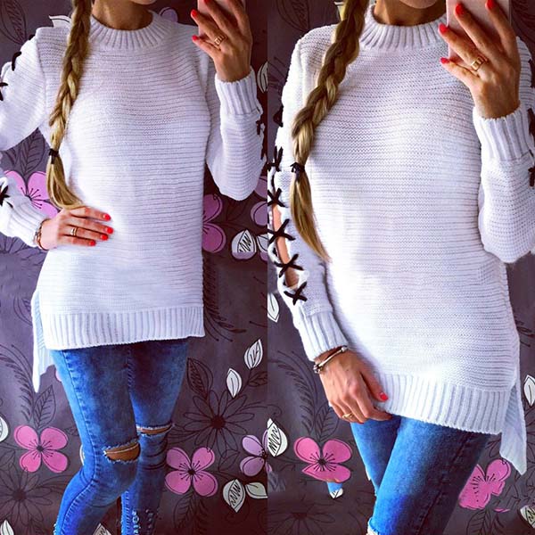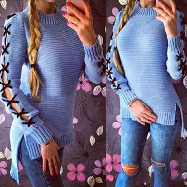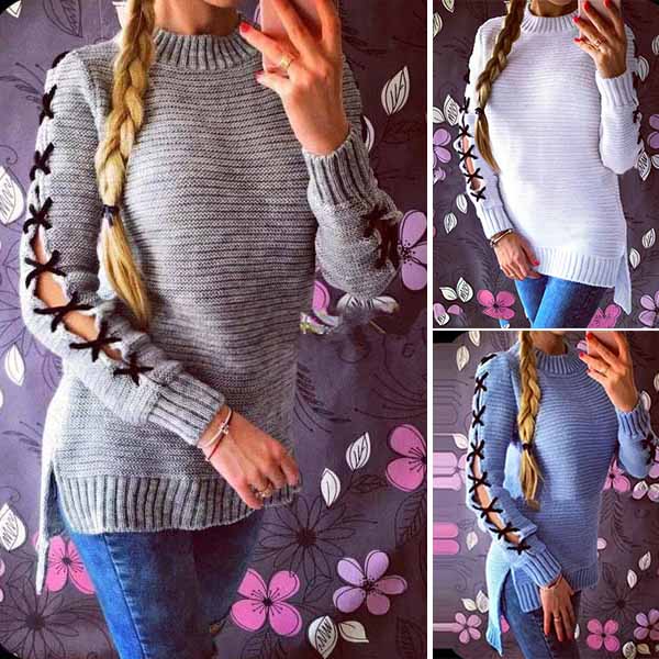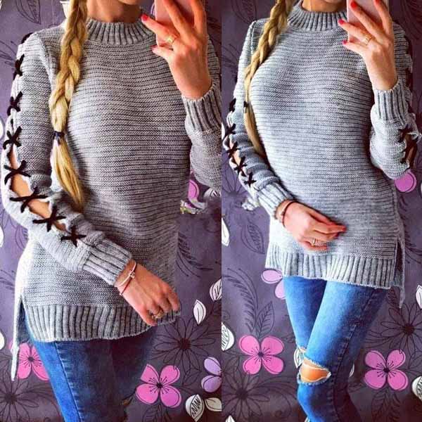 lace-up design at sleeve part make this piece look so distinctive. Cozy,stylish yet chic,