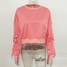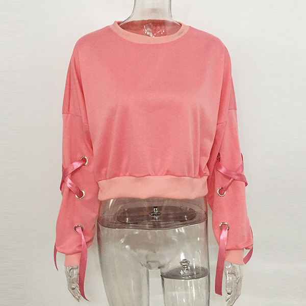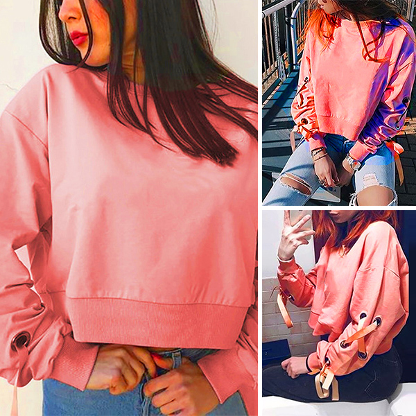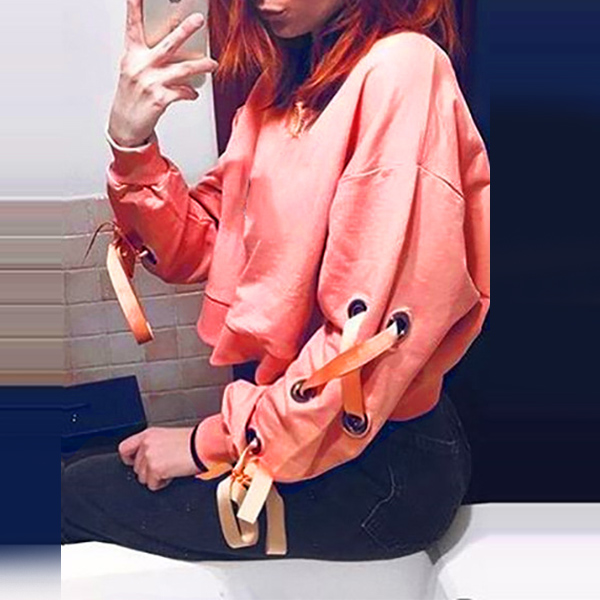 round neck and a loose silhouette,this wonderful piece can keep you cozy yet sexy. Sleeve part with lace-up design makes