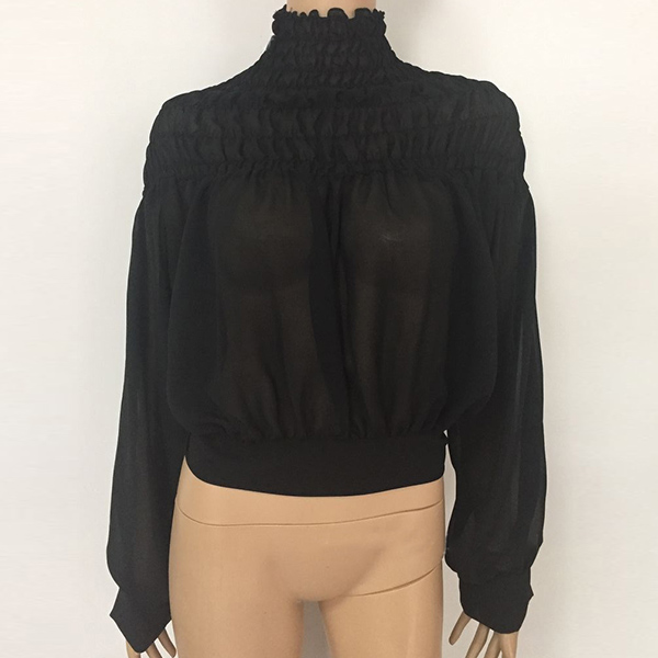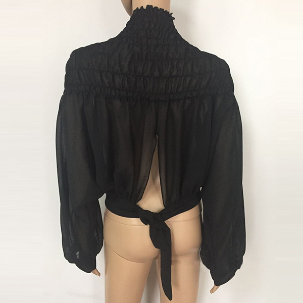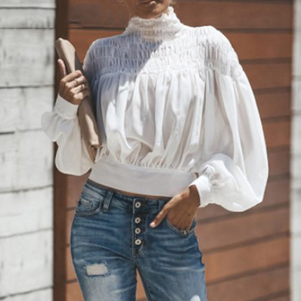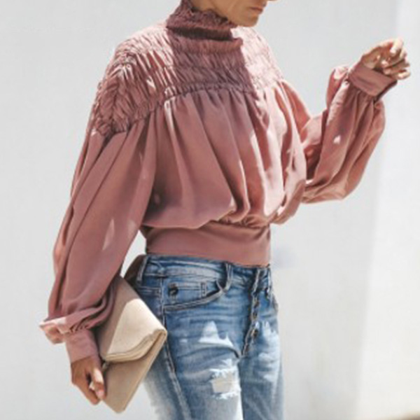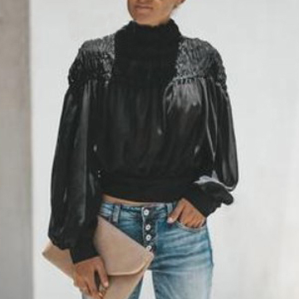 Solid color style,the lantern sleeve and mock neck are the highlights,which can enhance the charm of this piece.