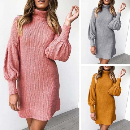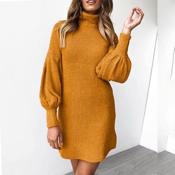 Crafted in a solid color,the lantern sleeve and turtleneck design make this piece look so