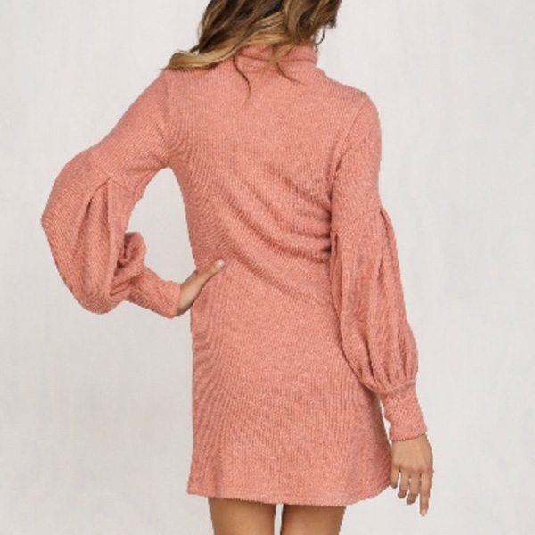 turtleneck and a fit silhouette,this knit dress not only can keep you warm,but also can display your perfect curve.