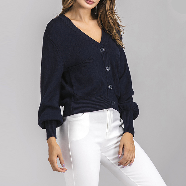 When you feel a little cold,you can just slip into this knit cardigan. Solid color style,designed with lantern sleeve,