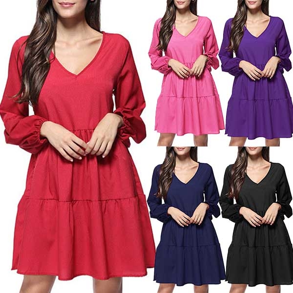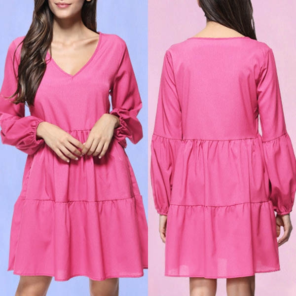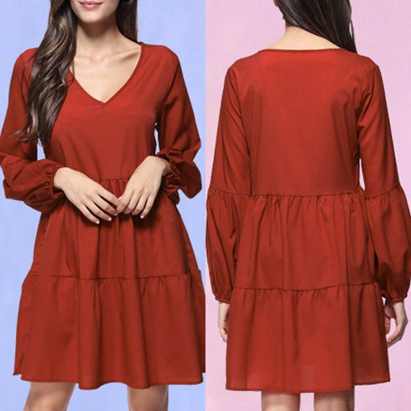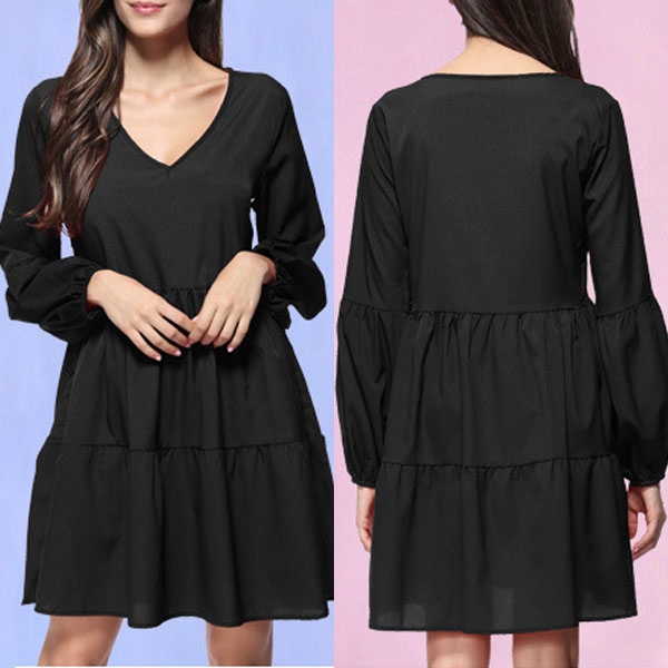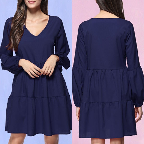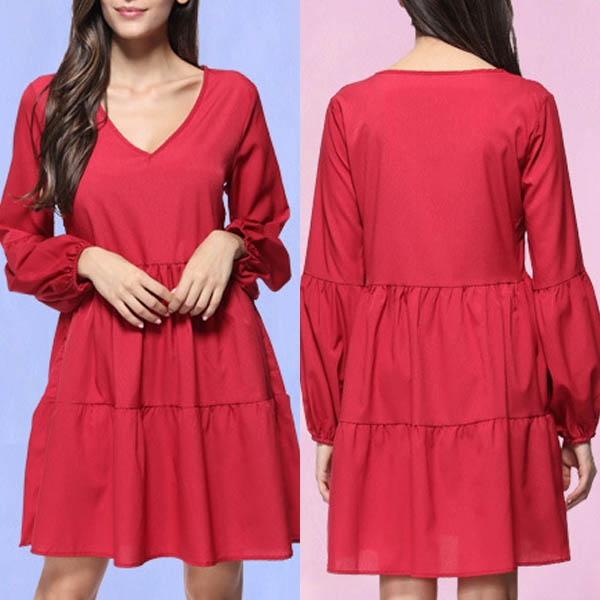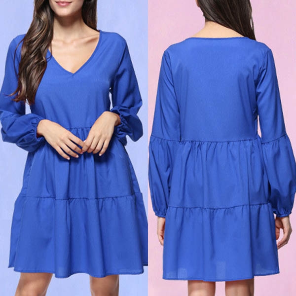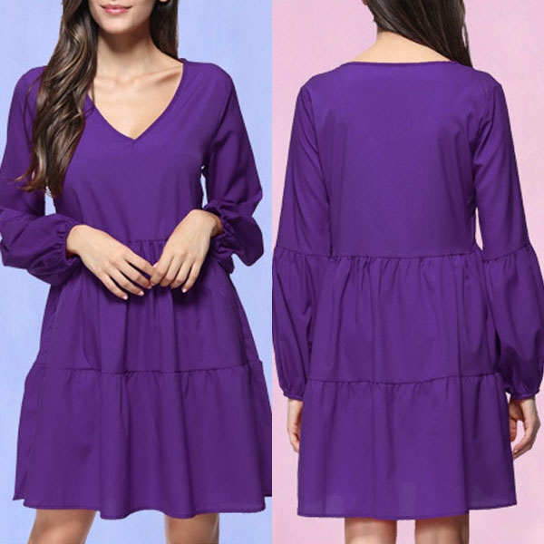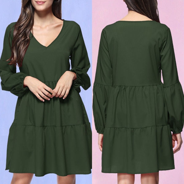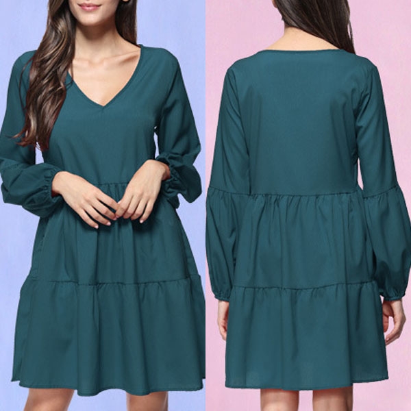 Start your wonderful day from this simple yet stylish dress. Boasts a solid color,the lantern sleeve