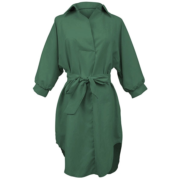 This dress comes with a classic yet stylish pure color tone,finished with long sleeve,lapel collar and slim
