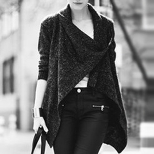 lapel and irregular hemline design, this piece is very cozy and convenient to wear. Soft material