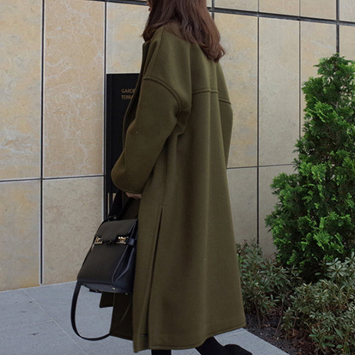 Walk on your fashion stage with this woolen coat. Concise and generous style, this piece is outfitted with solid color,