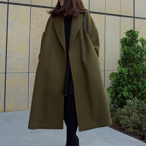 long sleeve and lapel design, highlighting your stylish and classic look. A loose silhouette is paired with warm and