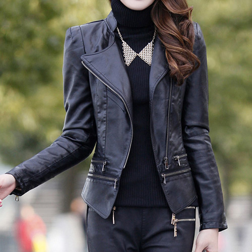 good helper. Styled with solid color, long sleeve and lapel design, the oblique zipper construction