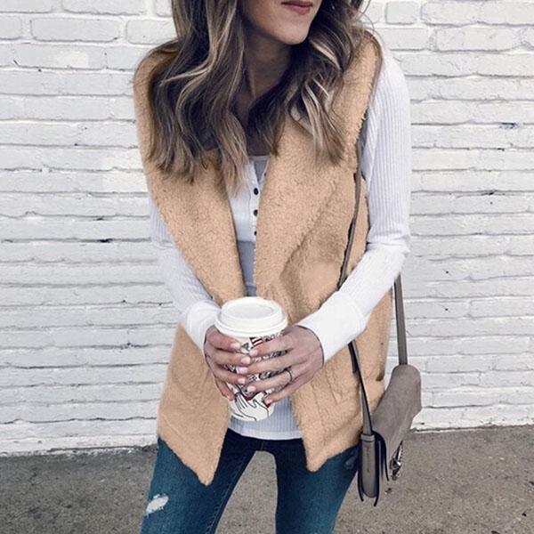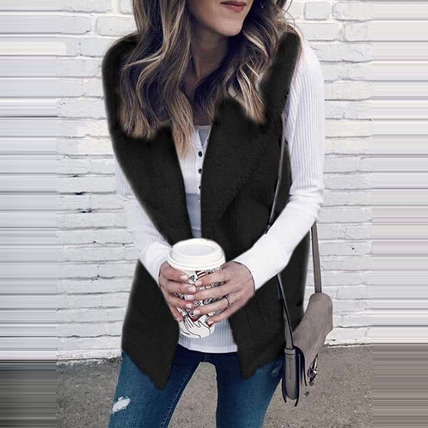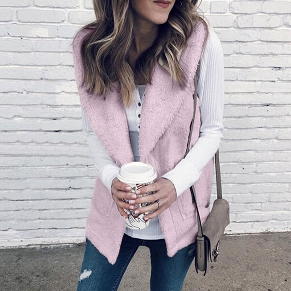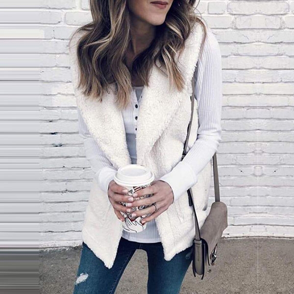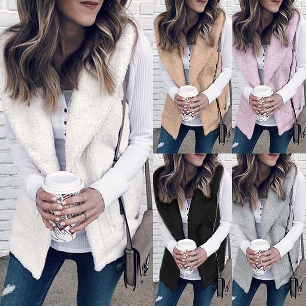 From the autumn to the chilly winter,this plush vest can give you an easy transition. It is styled with solid color,lapel and a clean silhouette,its