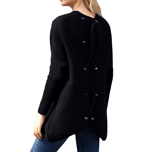 Boasts a solid color,the irregular hem and lace-up design at back side make this piece look so
