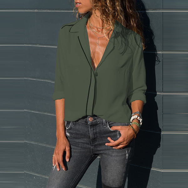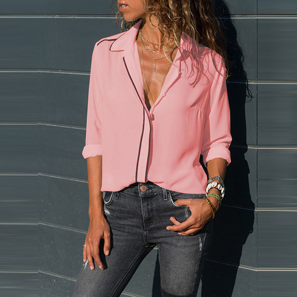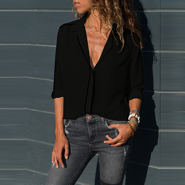 This cozy,stylish and all-match chiffon blouse is worth for your attention. Comes with a solid color,