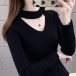 Fashion Solid Color Long Sleeve Choker V-neck Knit Top