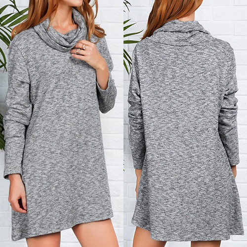 dress by your side. Solid color style,styled with long sleeve,cowl neck and a loose silhouette,which