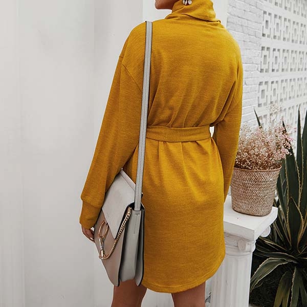 Solid color tone design makes it look simple yet generous. The cowl neck and waist strap