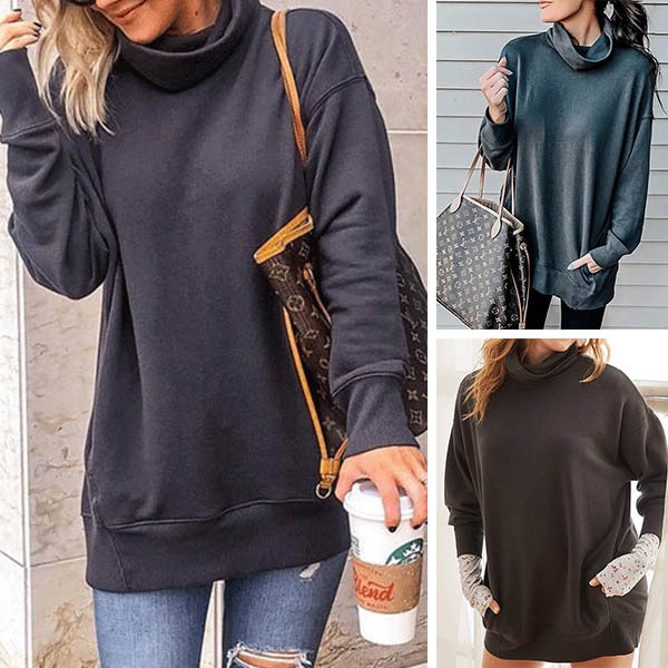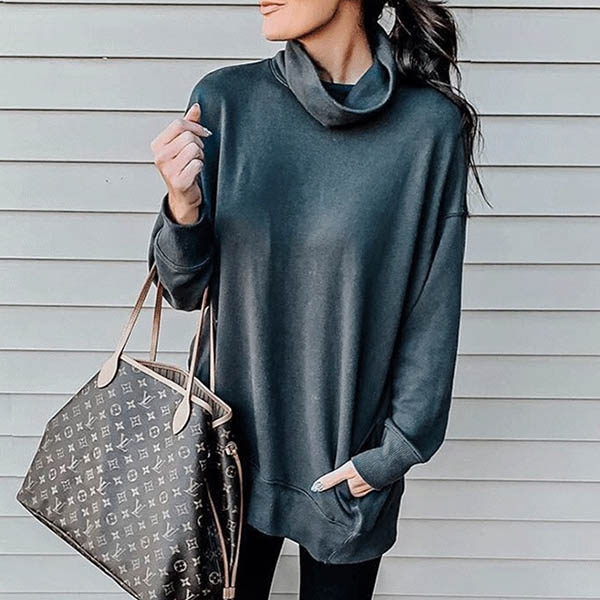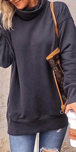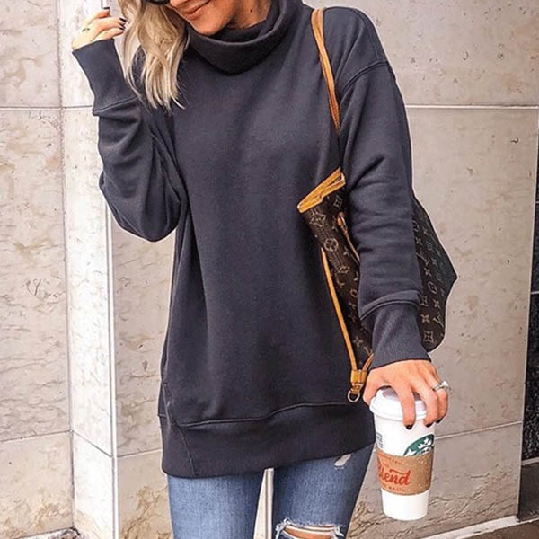 Fashion Solid Color Long Sleeve Cowl Neck Sweatshirt