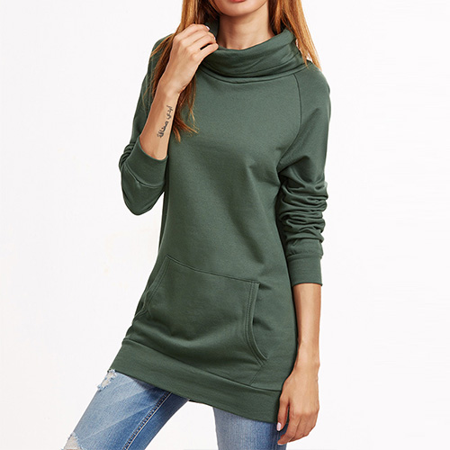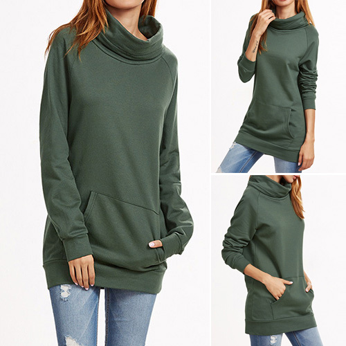 sleeve,kangaroo pocket and a cowl neck,chic and unique. This number