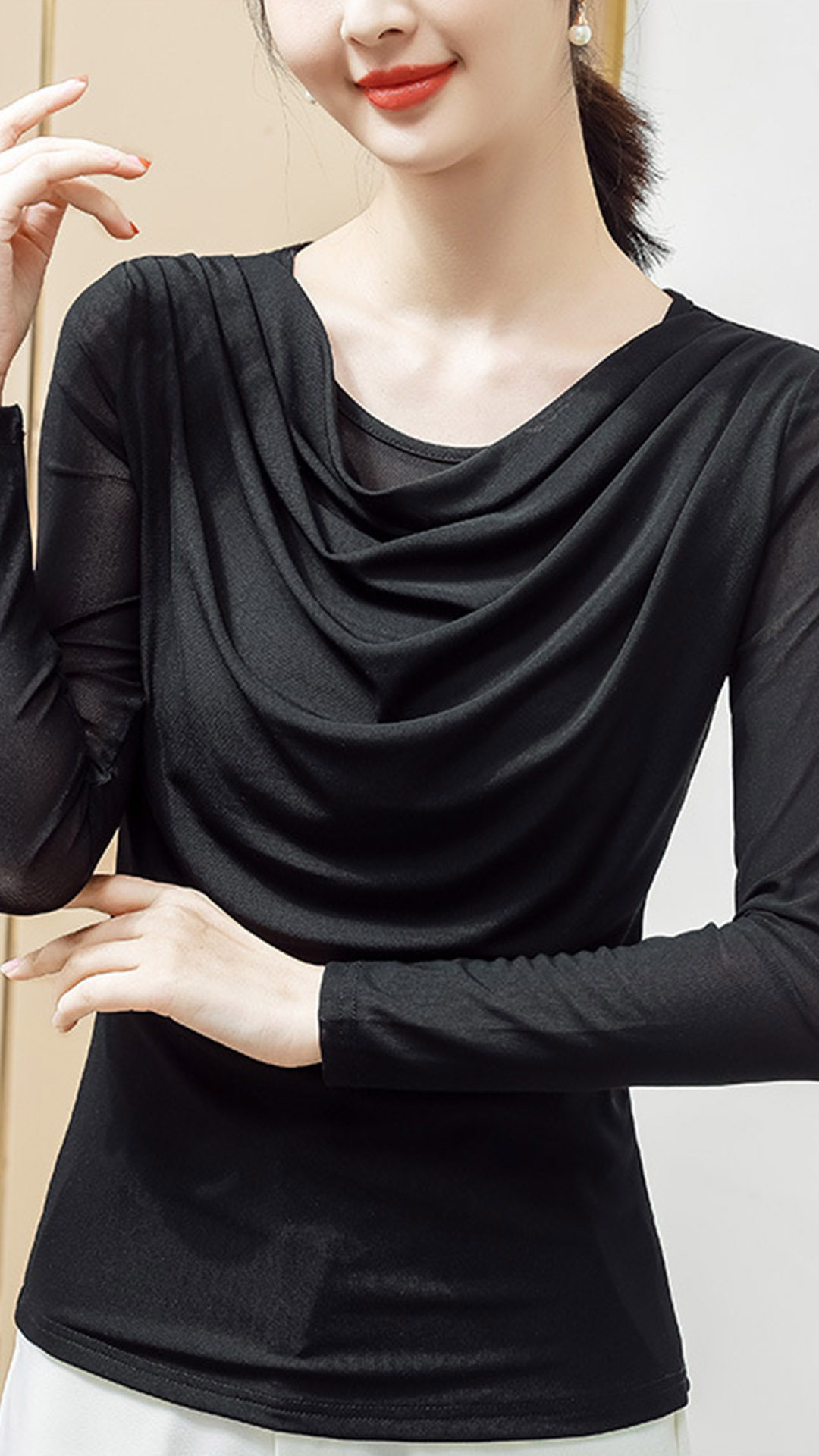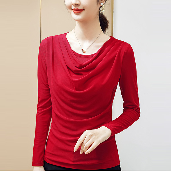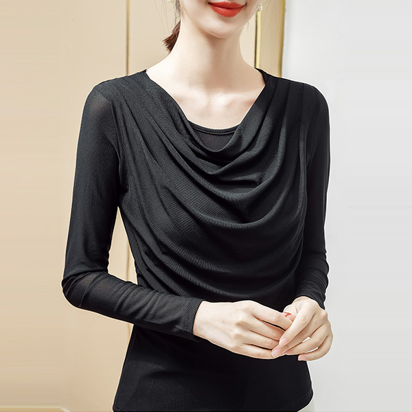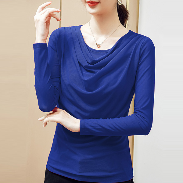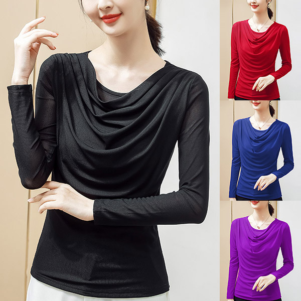 Fashion Solid Color Long Sleeve Cowl Neck T-shirt