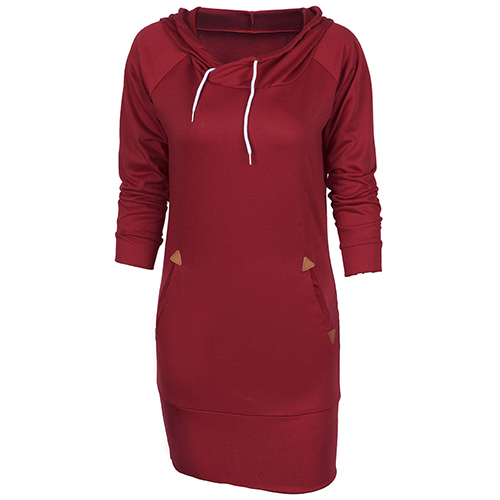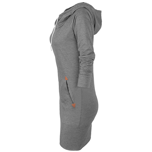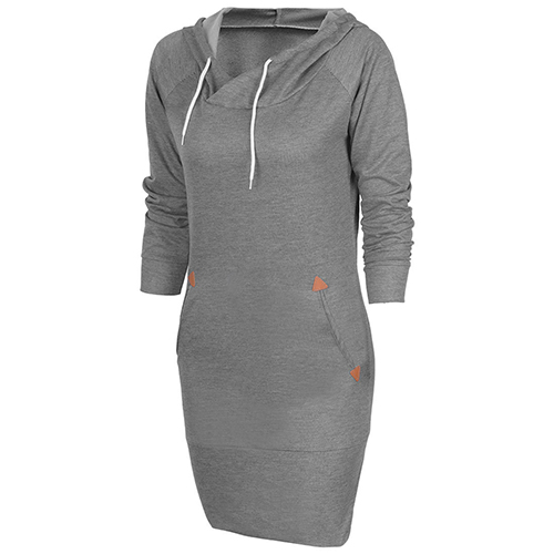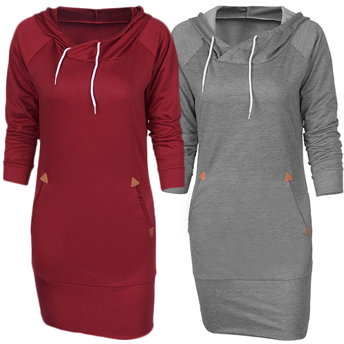 The hoodie dress is equipped with solid color and long sleeve patterns, casual and simple. It is decorated