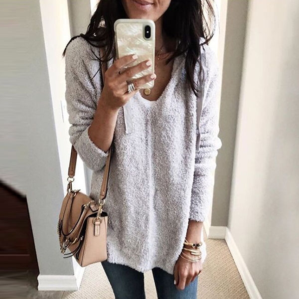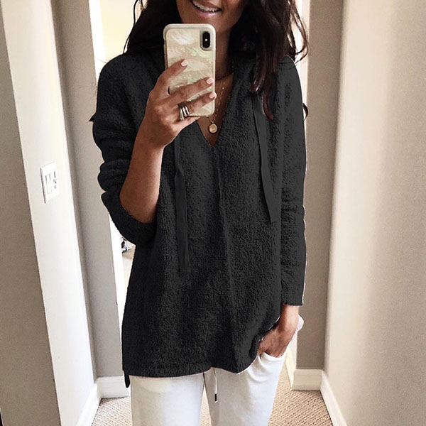 drawstring v-neck,simple,stylish yet sexy. Simply matching with your skinny jeans for a laid-back