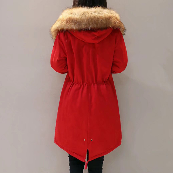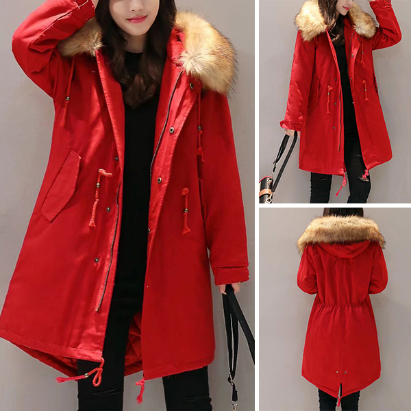 This coat is your good choice in these chilly days. Solid color style,designed with long sleeve and faux fur